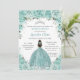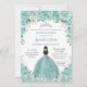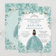Invitation Turquoise Vert Floral Princesse Argent Quinceañera
