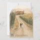 Step into a world of Mediterranean romance with this Tuscan Vineyard Elegant Arch Wedding Invitation. This unique die-cut arch card features a breathtaking watercolor scene of a sun-drenched Italian villa and rolling vineyard hills, framed by a delicate golden vine arch with white grapes. The illustration of a couple walking hand-in-hand down a cypress-lined path adds a personal and deeply romantic touch to your announcement.