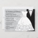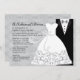 Une belle invitation avec une robe mariage avec une broderie de jupe et un ruban coulant, un écharpe de taille à côté d'un smoking noir. Idéal pour toutes les fêtes liées aux mariages.