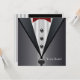 Elégant tuxedo noir, chemise blanche et cravate arc rouge formalisé événement ou modèle d'invitation à la fête. Cette invitation à la fête en tuxedo noir classe est facilement customisée pour votre événement en choisissant simplement le bouton "Customiser!" pour commencer à ajouter vos détails d'événement, le style de police, la taille et la couleur de police et le libellé. Veuillez noter que tous les modèles de cartes et d'invitations que vous trouverez sur Zazzle sont des graphiques imprimés sans bijoux, arcs, surélevés, gaufrés, ou des pièces ou pièces ajoutées.