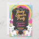Rainbow Unicorns Baby shower Party Invitation - Cartes d'invitation de baby shower à thème unicorne mignonne et colorée. Deux licornes se miroitant l'une l'autre, parfait pour les jumeaux et les couples amoureux de licorne. Style de texte blanc avec couleurs de contraste sur plaque de tableau noir orné. ♥ webgrrl.art
