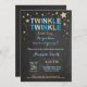 Invitation Baby shower Twinkle Twinkle Little Star. Parties scintillant bleue et or. Invitation Baby shower fille ou garçon. Bleu. Arrière - plan noir tableau noir. Pour plus de personnalisation, cliquez sur le bouton "Customiser" et utilisez notre outil de conception pour modifier ce modèle.