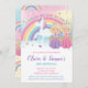 Whimsical Twins Princess et Unicorn Birthday Party Invitation, avec une licorne arc-en-ciel et de belles princesses. Personnalisez cette incroyable invitation Princess and Unicorn Party avec vos détails de fête facilement et rapidement, appuyez simplement sur le bouton customiser pour réorganiser et formater le style et le placement du texte. Design exclusif (c) Le Happy Cat Studio. Correspondance d'objets en magasin !