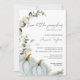 Célébrez le double des bénédictions avec notre Twins Little Citrouille Boys Fall Baby shower Invitation! Cette charmante décoration à thème automnal est composée de citrouilles d'aquarelle bleue, associés à des sprigs doux d'eucalyptus, créant une palette sereine et élégante, parfaite pour accueillir des petits garçons jumeaux. Des illustrations d'aquarelle et une typographie élégante se rencontrent sur un arrière - plan d'ivoire chaleureux, donnant le ton d'une fête rustique et cosy. Avec ses teintes bleues douces et sa verdure naturelle, cette invitation est le mélange parfait du charme saisonnier et de l'élégance moderne du baby shower. Invitation aimait ceux qui faisaient doucher vos deux petits citrouilles avec amour et joie — avec une invitation aussi douce et unique que la célébration elle-même.