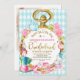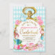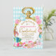 Twins Photo Watch Alice In Onederland Anniversaire Invitation Cute Alice au pays des merveilles sur le thème de l'invitation de premier anniversaire pour les jumelles avec une grande montre de lapin blanc, diverses arrangements floraux roses, lapin blanc, un casquette de haine, théière et divers autres articles de l'histoire. Le design comprend également un mot de feuille d'or immobile dans un style calligraphique mignon et un arrière - plan motif en forme de losange bleu bébé. La photo de votre petite fille apparaît sur le dos.