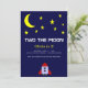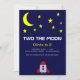 Cette invitation à l'anniversaire Two The Moon est parfaite pour une fête d'anniversaire de 2ème anniversaire pour un garçon ou une fille. Il comprend un petit vaisseau-fusée qui s'envole vers la lune et les étoiles.