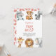 Cute and fun kid's safari animals theme 2nd birthday party invitation featuring illustration of safari animals of giraffe, snow leopard, rhino, lion, elephant, and zebra. The text says "XX is TWO wild." Perfect for a boy's birthday party.