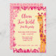 Invitation Two Wild Safari Animals Giraf Girl Pink 2nd Bday