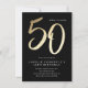 L'invitation minimaliste moderne 50e anniversaire comprend un faux numéro de feuille d'or stylé écriture manuscrite 50 et les détails de votre fête dans la police serif classique sur couleur arrière - plan noir, simple et élégant, grande surprise invitation d'anniversaire pour adultes hommes et femmes. La couleur noire de l'arrière - plan peut être changée en n'importe quelle couleur de votre choix.
