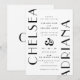 Ce faire-part de mariage de style Art déco présente des lettres, des noms de mariée et de mariée, ainsi que des détails du mariage, y compris l'emplacement, la date et l'heure. Utilise un jeu de couleurs noir et blanc, et un monogramme moderne sur le dos. Parcourez ma collection pour la suite correspondante. ・ ・ ・ Pour plus de suites mariages, visitez ma boutique Zazzle.com/EventsByJessicaAmber ・ ・ Pour les commandes sur mesure, envoyez-moi un message sur Zazzle
