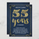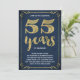 Cette invitation branchée et élégante à la fête du 55e anniversaire du mariage présente une typographie vintage, d'élégantes fioritures, une calligraphie de script de brosse, une fausse feuille d'or et un arrière - plan bleu marine chic.