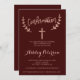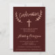 La typographie de la feuille d'or rose Faux confirme la bourgogne rouge. Une invitation moderne du parti de la Première Sainte Communion avec cette main de brosse en or rose moderne, simple, élégante et chic en lettrant la typographie sur un simple arrière - plan bordeaux. Parfait pour une soirée simple, élégante et moderne. Si vous avez besoin d'un texte modifié et customisé n'hésitez pas à me contacter!