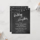 Cette carte de réception de mariage sophistiquée mais rustique présente une image de fond de tableau noir texturé sur laquelle est superposée une image représentant des guirlandes de lumières blanches scintillantes. J'ai utilisé une police de caractères cursive élégante et tourbillonnante pour rendre les graphiques représentant les mots "Réception de mariage" ; au verso, j'ai placé le mot "amour". Votre propre texte est facilement ajouté pour personnaliser ce design autant ou aussi peu que vous le souhaitez. Utilisez les champs de modèle pour simplement saisir vos informations personnelles, et cliquez pour personnaliser davantage si vous souhaitez repositionner l'une des couches déverrouillées. Il y a un léger surlignage noir opaque au-dessus de la couche de tableau noir ; supprimez-le si vous préférez un fond de tableau noir plus clair. N'hésitez pas à me contacter pour des demandes spéciales ou pour obtenir de l'aide pour la personnalisation