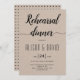 Scénario cursive ctypographie kraft papier rustique mariage de répétition invitation à dîner. Le dos comprend un motif géométrique noir et blanc sur du papier kraft brun.