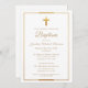 Invitation Typographie de script Gold Cross Chic Élégant Bapt