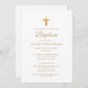 Invitation Typographie de script Gold Cross Chic Élégant Bapt