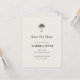 Cette sauvegarde de la date carte postale comprend une simple typographie focale sur la silhouette d'un palmier en noir sur ecru pour une carte moderne et minimaliste Enregistrer la date pour votre prochain mariage. Tout le texte est modifiable pour répondre à vos besoins personnalisés.