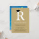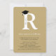 Une conception de typographie or/blanc propre et percutante mettant en vedette une initiale 'R' en gras et une toque de fin d'études noire distinctive. Cette mise en page minimaliste se concentre sur le portrait de l'élève de dernière année et la réussite de la promotion 2026, offrant un moyen élégant et contemporain d'annoncer votre réussite de fin d'études.