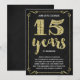 Cette invitation de fête pour le 15e anniversaire de mariage, chic et élégante, présente une typographie vintage, des fioritures élégantes, une calligraphie au pinceau, un faux feuillet doré et un fond noir chic.