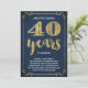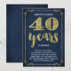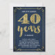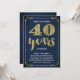 Cette invitation de fête pour le 40e anniversaire de mariage, chic et élégante, présente une typographie vintage, des fioritures élégantes, une calligraphie à l'écriture manuscrite, un faux feuillet doré et un fond chic bleu marine.