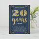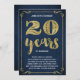 Cette invitation de fête d'anniversaire de mariage élégante et chic présente une typographie vintage, des fioritures élégantes, une calligraphie au pinceau, un faux papier métallisé doré et un fond bleu marine chic.