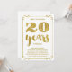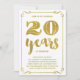Cette invitation de fête d'anniversaire de mariage de 20 ans chic et élégante présente une typographie vintage, des fioritures élégantes, une calligraphie au pinceau, un faux papier métallisé doré et un fond blanc chic.