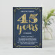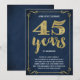 Cette invitation de fête d'anniversaire de mariage de 45 ans élégante et chic présente une typographie vintage, des fioritures élégantes, une calligraphie au pinceau, un faux papier métallisé doré et un fond bleu marine chic.