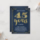 Cette invitation de fête d'anniversaire de mariage élégante et chic présente une typographie vintage, des fioritures élégantes, une calligraphie au pinceau, un faux papier métallisé doré et un fond bleu marine chic.