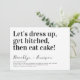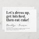 Invitations amis et famille à vous rejoindre pour vos célébrations mariages avec ce faire-part de mariage amusant. Le texte dit : "On s'habille, on s'énerve, on mange du gâteau !"