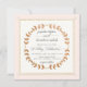 Cette couronne de feuilles de laurier dessinée à la main a été remplie d'un design d'art en cuivre et mise en valeur avec de l'or rose pour une suite d'invitation de mariage très moderne et romantique et élégante. Vous pouvez changer la couleur de la bordure extérieure et le côté arrière de n'importe quelle couleur que vous concevez, présentée ici dans un rose pâle doux. Copyright artistique Audrey Jeanne Roberts.