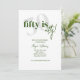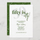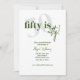 La typographie en gras avec calligraphie 50 est des invitations de fête d'anniversaire astucieuses en vert et blanc. Le dos présente un fond entièrement vert avec des taches/bulles blanches pour imiter les bulles dans le vin et le champagne afin de célébrer comment nous vieillissons comme un bon vin. Tout le texte est entièrement personnalisable.