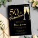 Scénario de calligraphie moderne fausse or tendance 50 et fabuleuses années d'anniversaire noir invitation avec flûtes de champagne.