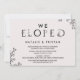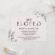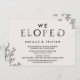 Cette carte d'invitation à la typographie florale "nous nous sommes enfuis" est parfaite pour une réception d'élopement élégante. Le design romantique présente des lettres simples ornées de fleurs, une bordure botanique et un fond rose subtil.