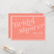 Cette invitation à la douche nuptiale Saumon corail comporte le mot "Fête des mariées" dans la typographie moderne tourbillonnante florissante. Cette invitation comprend également un côté arrière correspondant. Personnalisez cette invitation en remplaçant le texte de l'espace réservé dans le modèle. Pour plus d'options comme changer la police et sa taille, cliquez sur le bouton "Customiser". *Veuillez noter que le filigrane Zazzle qui apparaît dans l'aperçu du zoom n'apparaîtra PAS sur le produit imprimé final © Rosewood et Citrus