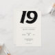 Célébrez le jour spécial de votre fils ou de votre fille avec notre invitation d'anniversaire 19 ans minimale - style simple. Parfait pour votre célébration de fête, cette invitation moderne en typographie grasse en noir et blanc impressionnera vos invités avec son design minimaliste, élégant et simple.