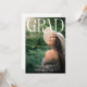 Célébrez vos nouvelles extraordinaires avec vos amis et votre famille et créez l'invitation parfaite de la fête de remise de diplômes avec ce modèle simple mais élégant. Ce design de haute qualité est facile à customiser pour être le vôtre ! Ce faire-part de remise de diplômes de photographie présente votre photo préférée avec le titre 'GRAD' dans une écriture blanche et stylisée et leur année de classe, nom, et lycée ou collège. L'inverse vous permet de customiser vos propres détails d'événement. Fêtons le diplômé !