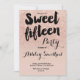Une typographie moderne de lettrage à la main au pinceau Sweet 15 en noir, jolie douche de faux or rose pailleté ombré avec bloc de couleur rose pastel pour invitation d'anniversaire Sweet 15 avec motif ombré or rose se fondant sur un fond rose. Parfait pour une princesse Sweet quinze, parfait pour elle, la fashionista qui aime les motifs modernes et le glamour
