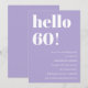 Cette invitation moderne pour un 60e anniversaire en violet lavande et blanc présente une typographie audacieuse et une palette de couleurs douces et élégantes qui semble intentionnelle et soignée. La mise en page épurée met en valeur cet événement marquant tout en gardant l'apparence générale simple et contemporaine. Idéal pour les dîners, les rassemblements dans le jardin ou les célébrations en soirée avec des amis et la famille. Personnalisez le texte pour qu'il corresponde à votre événement et créez une apparence cohérente avec des détails de fête coordonnés.