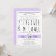 Cette superbe faire-part de mariage présente un design élégant et contemporain de typographie noir et blanc, complété par une touche de lavande violet. L'esthétique générale dégage élégance et raffinement, avec une touche vintage. Le texte principal est joliment affiché en noir sur un arrière - plan blanc immaculé, tandis que la date du mariage est mise en surbrillance sur une charmante bannière de lavande. Pour ajouter une touche de raffinement, une bordure noire encadre toute l'invitation. A l'envers, un ravissant motif de croix blanches orne un arrière - plan de lavande apaisant. La meilleure partie est que vous avez la liberté de customiser divers aspects de l'invitation, y compris le texte, la couleur et la taille du texte, la police, la couleur arrière - plan, ainsi que la couleur de la bannière lavande et le motif sur le dos.