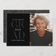 Typographie minimaliste moderne photo graduation géométrique noir et blanc faire-part de graduation de parties scintillant.