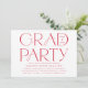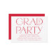 Invitations modernes de la grande fête avec "Grad Party" affiché en lettres rouges tendance avec l'année de graduation. Personnalisez les invitations rouges de la fête de graduation avec le nom du diplômé et les détails de la fête indiqués ci-dessous. Les invitations audacieuses à la remise des diplômes en typographie sont parfaites pour les diplômés du secondaire et du collège.