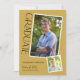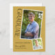 Cette invitation à la remise de diplômes comprend une typographie simple et 2 photos pour un design moderne. Cet invitation propose du texte noir sur un arrière - plan or et du texte personnalisé, au verso, pour les détails de votre fête.