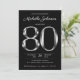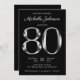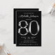 Typographie Invitation Black and Silver 80th Birthday. Faites une déclaration audacieuse avec cette invitation d'anniversaire en noir et argent, conçue pour ceux qui apprécient l'élégance moderne. Doté d'une typographie solide et élégante, sur fond noir, les touches d'argent chatoyantes apportent une touche de sophistication à votre célébration. Parfait pour une soirée haut de gamme ou une soirée formelle, cette invitation donne le ton d'un événement marquant élégant et inoubliable. Personnalisez-le avec les détails de votre fête et laissez le design chic parler d'elle-même alors que vous vous préparez à trinquer dans une élégance authentique.