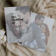 Ce faire-part de mariage photo défraîchi de typographie noire moderne est parfait pour un simple mariage. Le design minimaliste est composé d'une police rétro mais contemporaine avec une atmosphère bohème rustique unique. Parfait pour toute saison. Personnalisez-le avec 2 photos fiançailles, une sur le devant et une sur le dos.