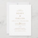 Cette typographie dorée chic en un seul faire-part de mariage est parfaite pour un mariage moderne. Le design simple présente une typographie classique minimaliste d'or et de blanc, dans un style boho rustique. Personnalisable dans n'importe quelle couleur. Gardez le design minimal et élégant, en l'état, ou personnalisez-le en ajoutant vos propres graphiques et artwork. Enregistrez du papier en incluant les détails au verso du faire-part de mariage plutôt que sur une carte de boîtier séparée. Inclure également les informations RSVP si votre invité répondra par voie électronique (facultatif).