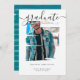 Concevez votre propre carte à plat personnalisée faire-part de graduation personnalisée de Ricaso - conçu avec une typographie de défilement texte diplômé avec un turquoise moderne vert, noir et blanc griffé ligne motif à l'arrière - CHANGER L'ÉCHANTILLON PHOTO À VOTRE PROPRE