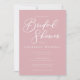 Cette invitation de fête de mariage rose poussiéreuse présente une typographie blanche délicate pour un après-midi romantique thé dansant pour une mariée féminine qui aime les couleurs douces et le design de script minimal. Invitations rose pastel doux.