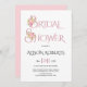 Typographie décorative rose vif et roses roses rose mariage invitation à la douche nuptiale. Cet élégant design de mariage affiche le texte "Fête des mariées" dans une élégante typographie dorée et abouquet de roses roses roses. Le dos est de couleur rose vif.