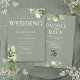 Cet élégant faire-part de mariage vert sauge avec typographie verte peut être personnalisé avec les détails de votre site mariage et votre code QR au verso. Conçu par Thisisnotme©