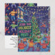Host the ultimate, most vibrant party of the season with this Ugliest Holiday Fest Ugly Sweater Party Invitation! The detailed illustration shows a lively crowd wearing their tackiest sweaters while celebrating under string lights in a snowy city street with a beautifully decorated Christmas tree. The back side features a fun pattern of tiny dancing figures in ugly sweaters. This modern, energetic, and quirky card is perfect for inviting guests to a fun, late-night holiday block party or market event.